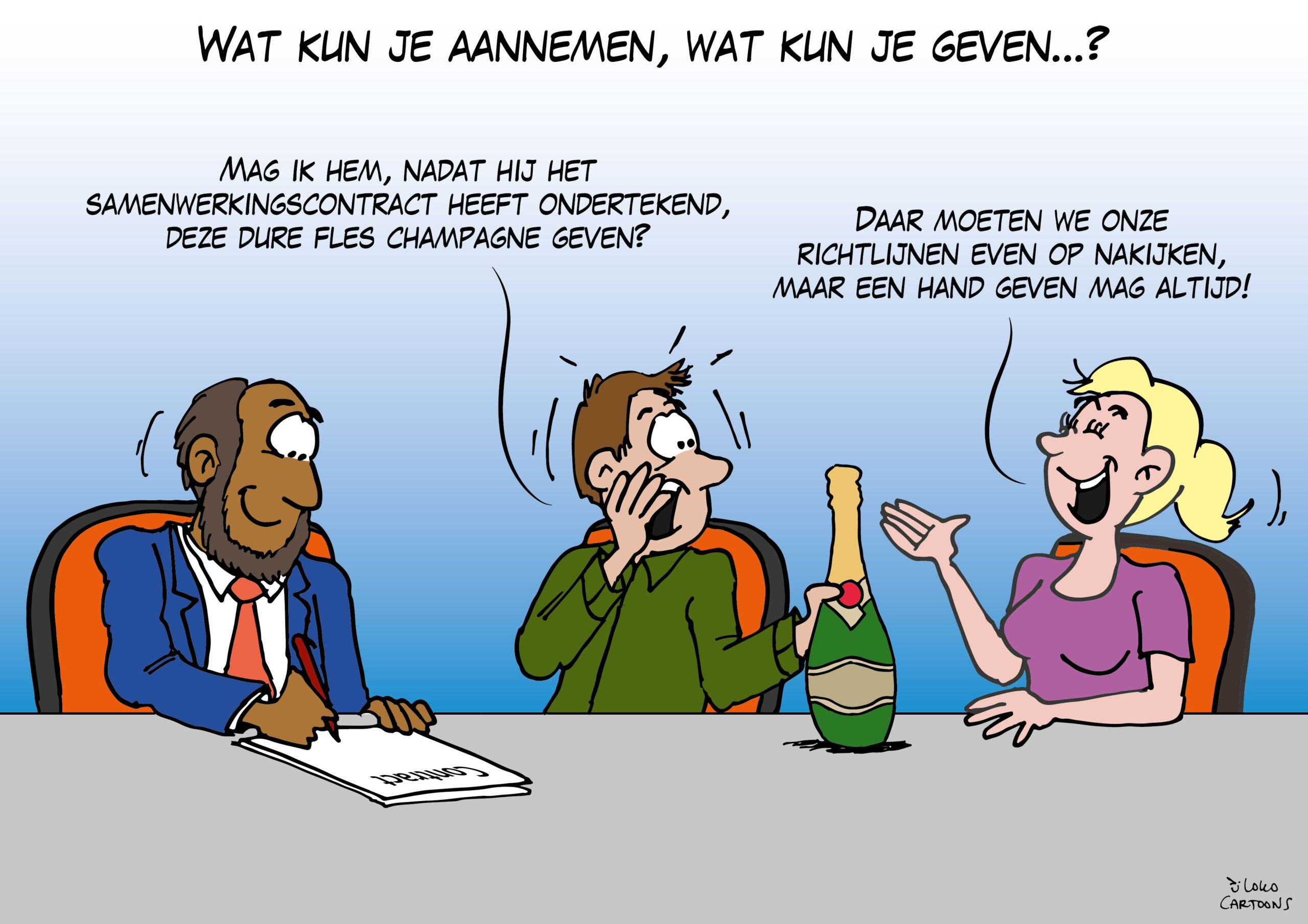 - het onder de grens van € 100,- per relatie per jaar blijft en je vooraf hebt vastgesteld dat de begunstigde het geschenk of de uitnodiging inderdaad van je mag aannemen.