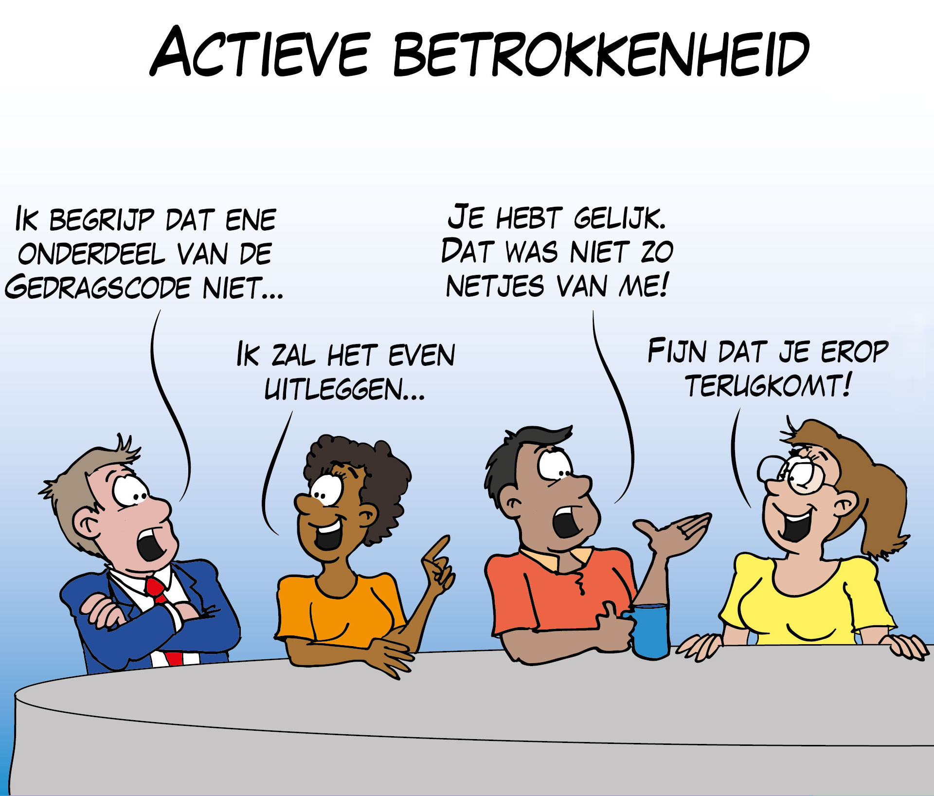 Een open en integere cultuur | Alle medewerkers hebben de verantwoordelijkheid om bij te dragen aan een open en integere bedrijfscultuur. Leidinggevenden stimuleren hun medewerkers om integer te handelen en geven daarbij zelf het goede voorbeeld. Zo zorgen zij voor een werkklimaat waarin medewerkers zorgen of twijfels kunnen uiten zonder angst voor represailles. Leidinggevenden zien er toe dat deze gedragscode wordt begrepen, gaat leven en wordt nageleefd.
